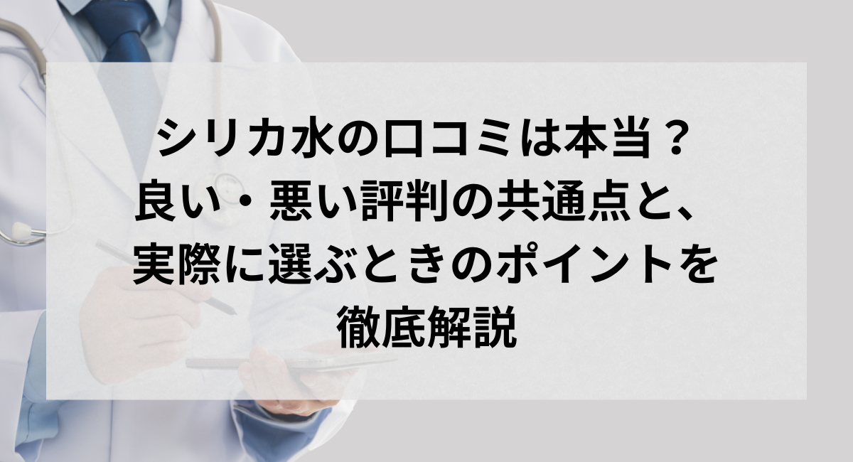 この記事では、薬機法・景表法に配慮しつつ、口コミの傾向を正しく整理し、シリカ水の“実際の評価の本質”をわかりやすく解説します。口コミは肯定・否定の両面があり、単純な情報で判断すると誤解が生まれやすいため、全体像を丁寧にまとめていきます。